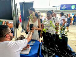 A distribuição de mudas também foi um sucesso no estande da Sedetec