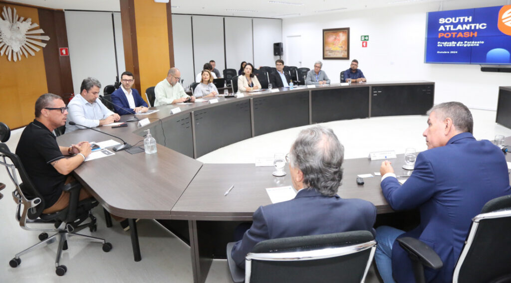 O governador Fábio Mitidieri recebeu a equipe da South Atlantic Potash nesta quarta-feira, 16, que apresentou ao chefe do Executivo estadual um projeto de exploração de potássio em áreas do pré-sal em Sergipe, que pode dar ao país a autossuficiência na produção de cloreto de potássio, insumo utilizado na produção de fertilizantes que atualmente é importado de países como Rússia e Ucrânia.