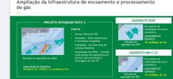 Já o diretor executivo de Refino e Gás Natural, Rodrigo Costa Lima e Silva, destacou os projetos Sergipe Águas Profundas (SEAP) e o BM-C-33. Segundo ele, esses projetos irão totalizar uma aplicação de cerca de 5 bilhões de dólares. “Esses números estão alocados no segmento de E&P e, com isso, a gente tem aqui um aumento significativo da nossa oferta no nosso portfólio Petrobras de cerca de 50 milhões de m³/dia de gás natural”, comentou o diretor em sua apresentação.